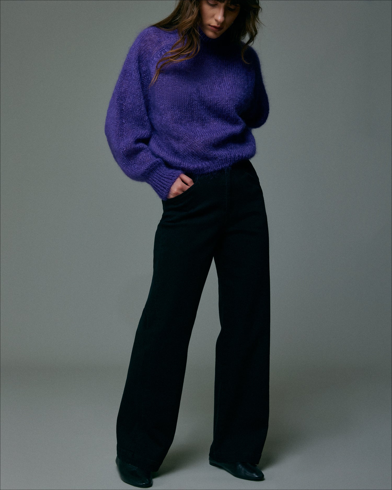 Voluminous sweater made in an Italian silk mohair blend. Cropped but oversized fit with balloon sleeves, mock neck and dropped shoulders. A lustrous and soft favourite.